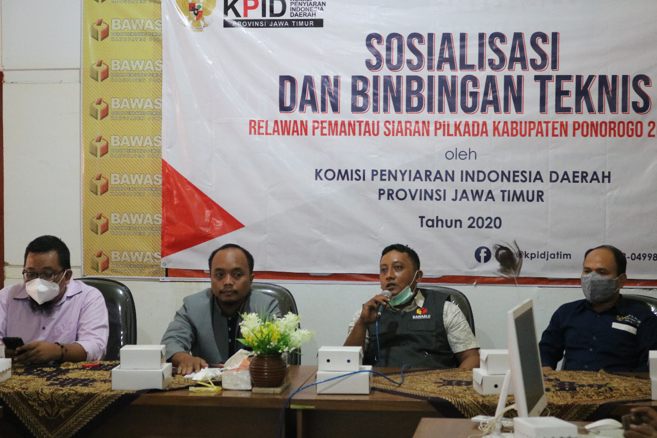 Hal tersebut ia sampaikan saat didapuk menjadi narasumber Sosialisasi dan Bimbingan Teknis Relawan Pemantau Siaran Pilkada Kabupaten Ponorogo tahun 2020, yang diselenggarakan Komisi Penyiaran Indonesia (KPI) Daerah Jawa Timur, di Aula Bawaslu Ponorogo, Rabu (28/10).