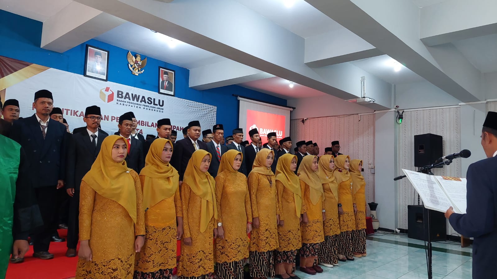 Pelantikan turut dihadiri Bupati Ponorogo, H.Sugiri Sancoko, SE.,MM., Anggota Bawaslu Jatim, Muh.Ikhwanudin Alfianto, Jajaran Pimpinan Bawaslu Ponorogo, Forkopimda serta Kepala Dinas Bakesbangpol dan Dispendukcapil Ponorogo.