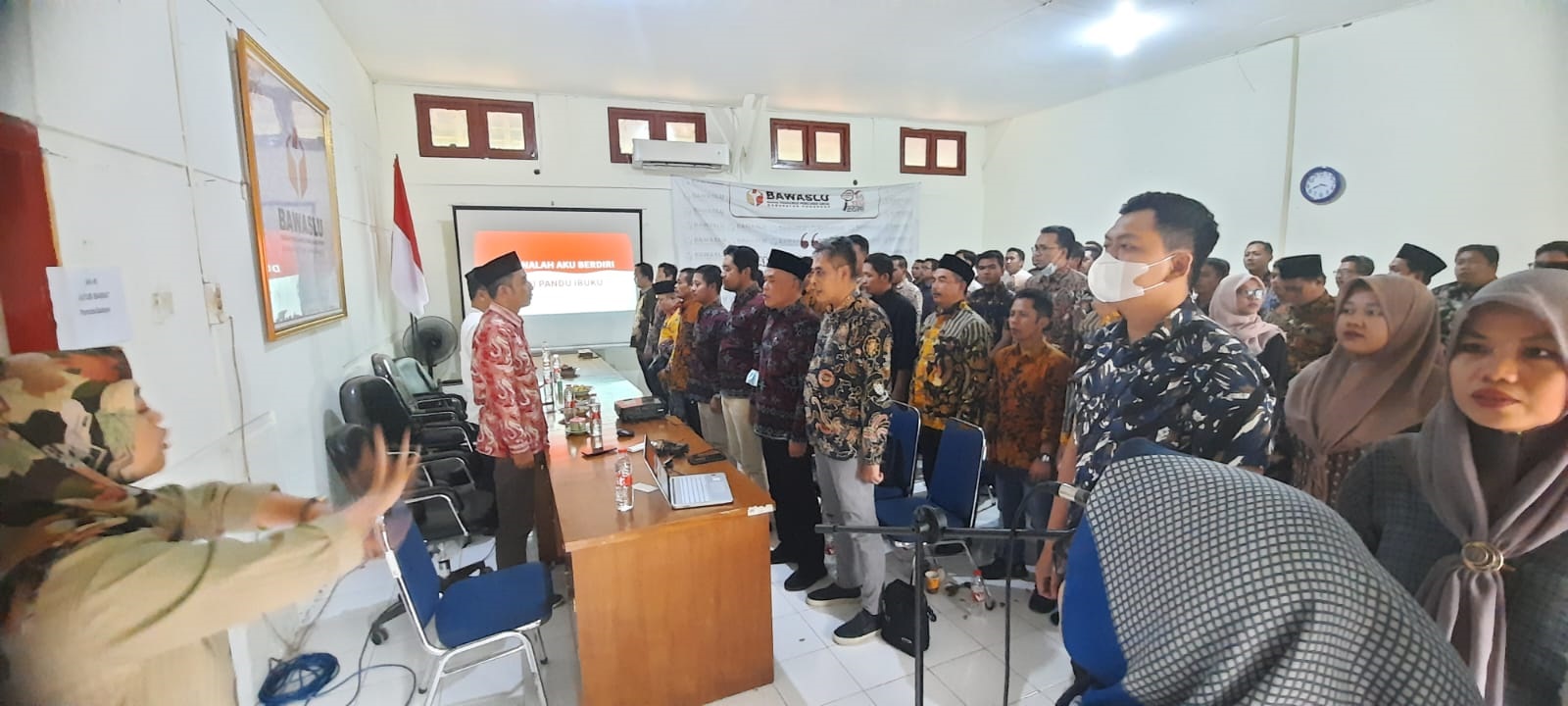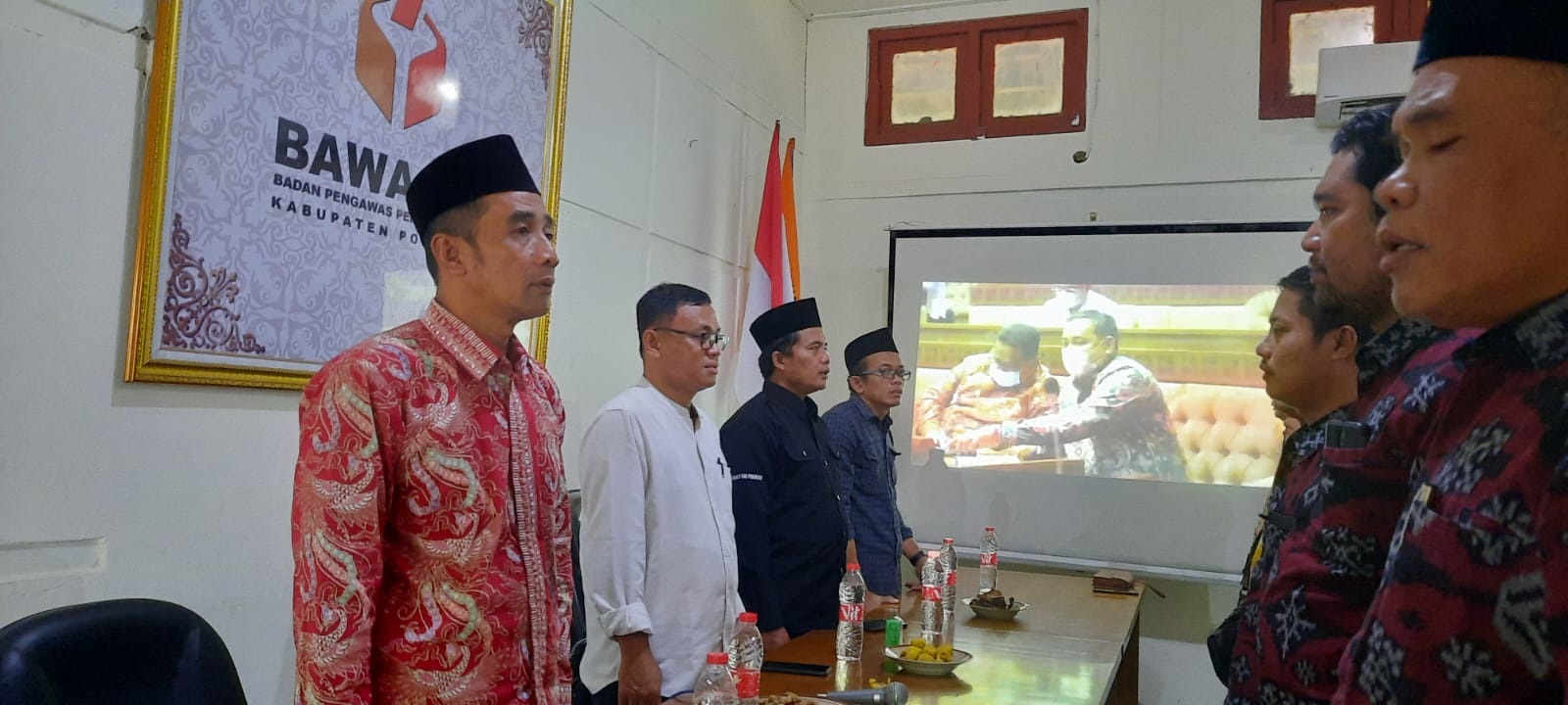 Hadir dalam kesempatan tersebut, Anggota Bawaslu Jatim Muh.Ikhwanudin Alfianto didampingi jajaran Pimpinan Bawaslu Ponorogo Muh.Syaifulloh, Marji Nurcahyono dan Juwaini.