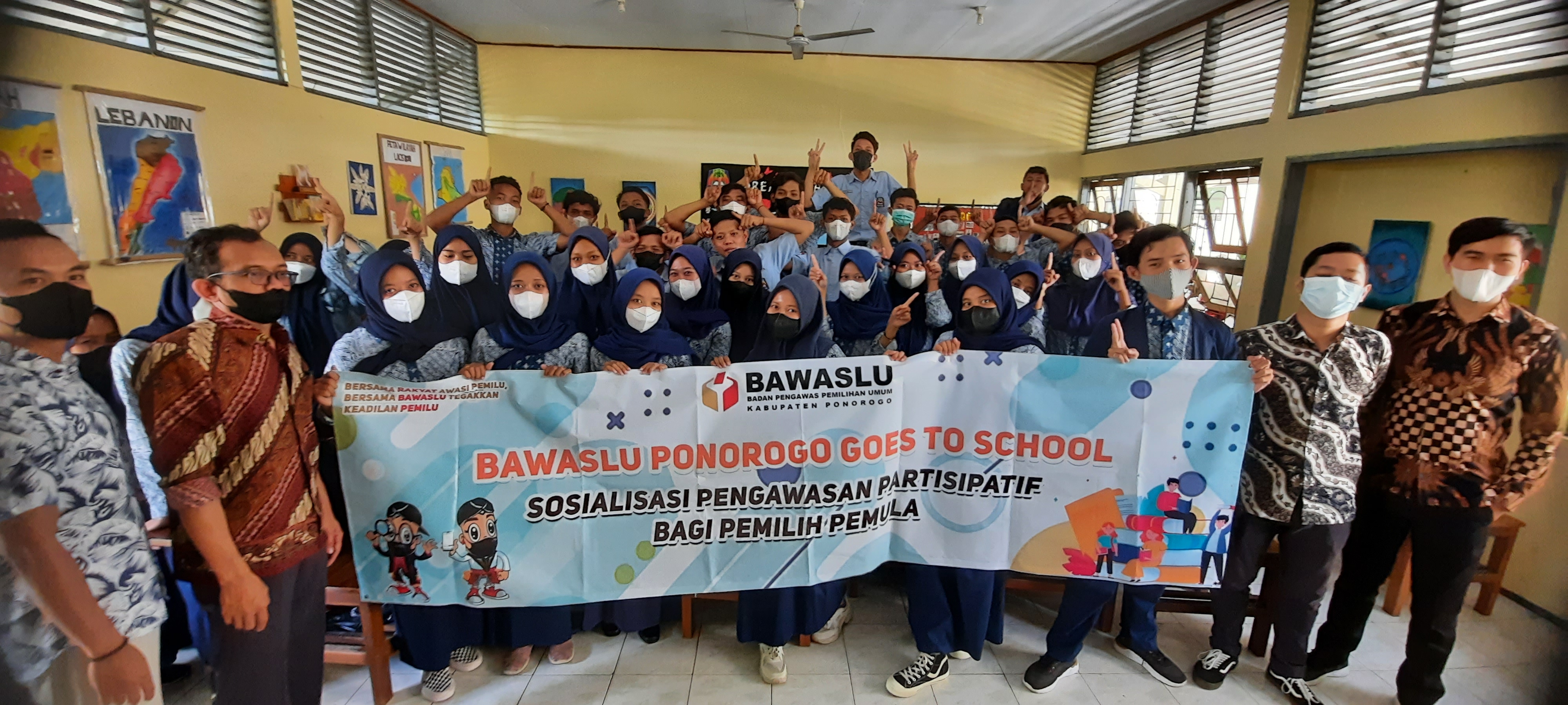 Melalui program Bawaslu Goes To School, Kamis pagi (25/11/2021), sesi pertama siswa diajak mengikuti materi yang disampaikan Kordiv Pengawasan dan Hubungan Antar Lembaga Bawaslu Ponorogo, Juwaini, kemudian pada sesi kedua para siswa diminta mengambil kertas rahasia secara acak, yang berisi pertanyaan-pertanyaan seputar Kepemiluan kemudian menjawabnya, siswa dengan jawaban benar paling banyak berhak mendapatkan doorprise khusus dari Bawaslu.