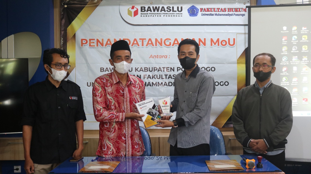 Ponorogo (ponorogo.bawaslu.go.id) Badan Pengawas Pemilihan Umum (Bawaslu) Kabupaten Ponorogo secara resmi sepakat melakukan kerjasama dengan Fakultas Hukum Universitas Muhammadiyah Ponorogo, Kamis (24/03/2022).