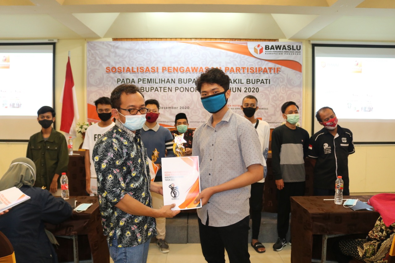 Dalam acara Sosialisasi Pengawasan Partisipatif bersama Ormas dan Organisasi Kepemudaan ini, juga turut diserahkan penghargaan kepada pemenang dan peserta Festival Film Pendek Pengawasan Bawaslu Ponorogo Tahun 2020.