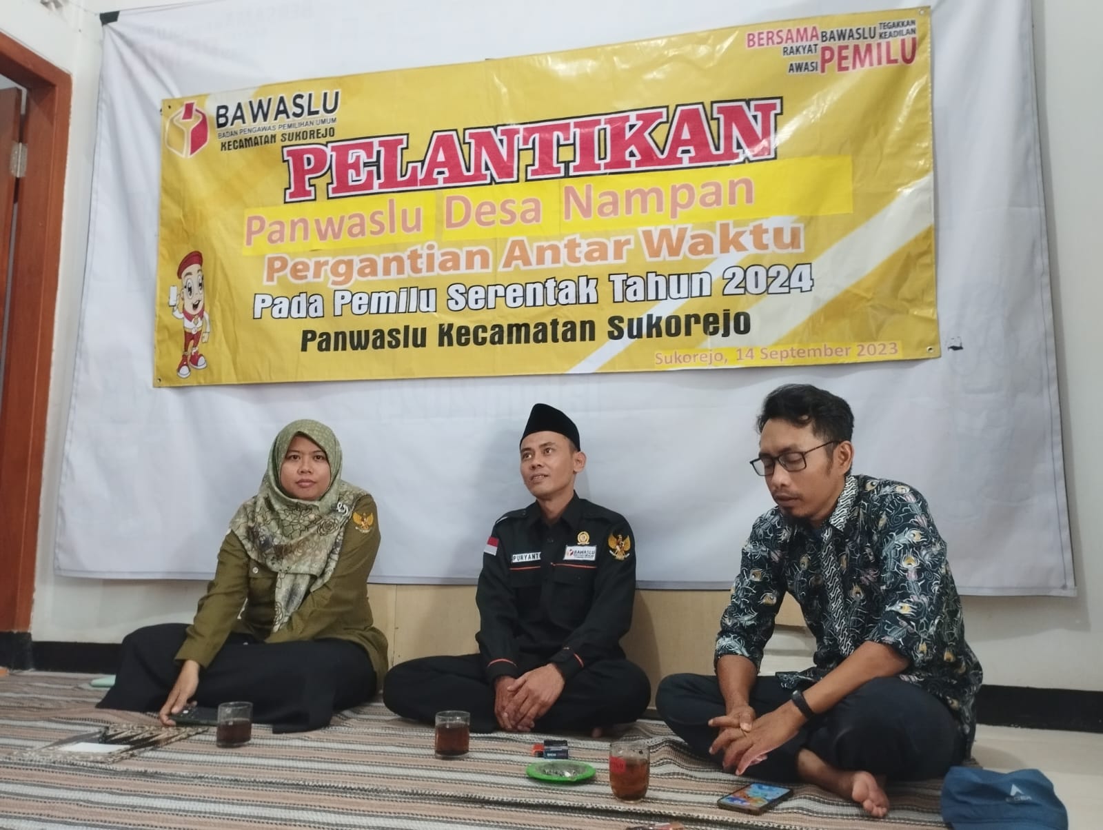 Pelantikan dihadiri Ketua dan anggota Panwaslu Kecamatan Sukorejo beserta jajaran sekretariat.
