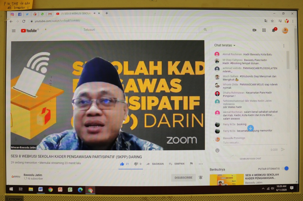 Demikianlah ungkapan Anggota Bawaslu Provinsi Jawa Timur, Muh.Ikhwanudin Alfianto saat menjadi narasumber diskusi dalam jaringan (webkusi) SKPP Daring sesi 8, Kamis (11/6).
