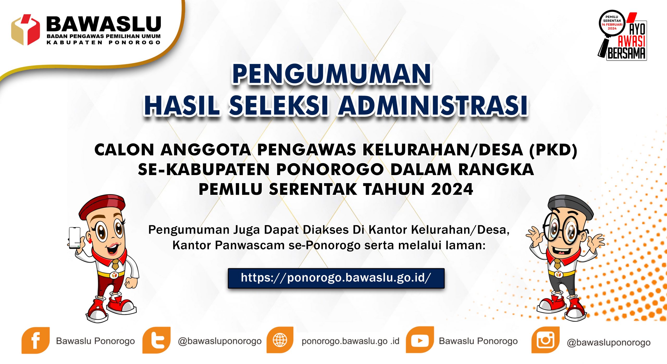 Pengumuman Hasil Seleksi Administrasi Calon Anggota Panwaslu Kelurahan/Desa Se-Ponorogo Pada Pemilu Serentak 2024