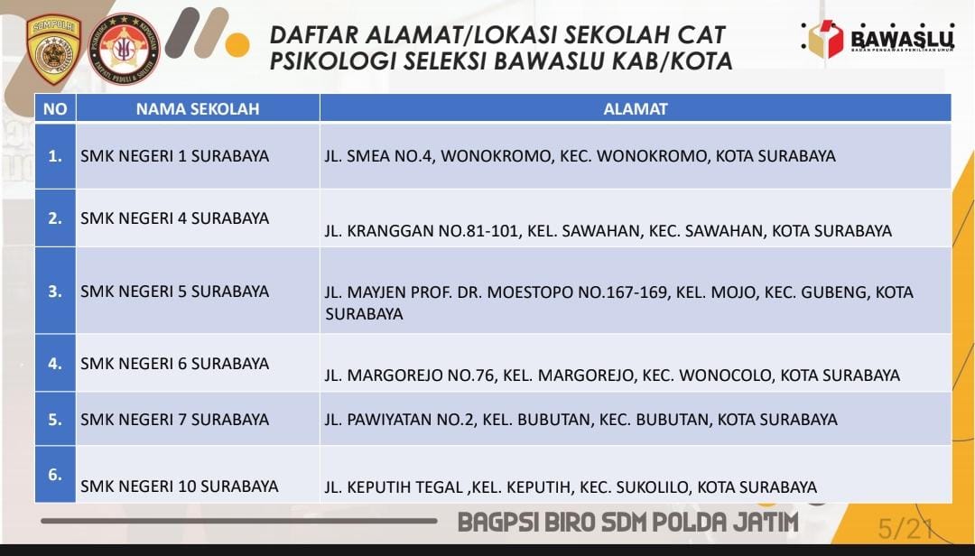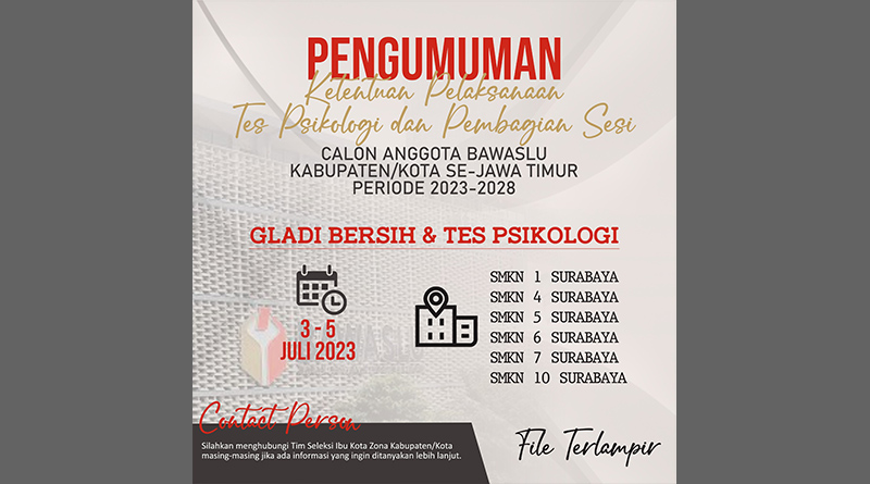 Pengumuman Ketentuan Pelaksanaan Tes Psikologi Dan Pembagian Sesi Calon Anggota Bawaslu Kabupaten/Kota Se-Jawa Timur Masa Jabatan 2023–2028