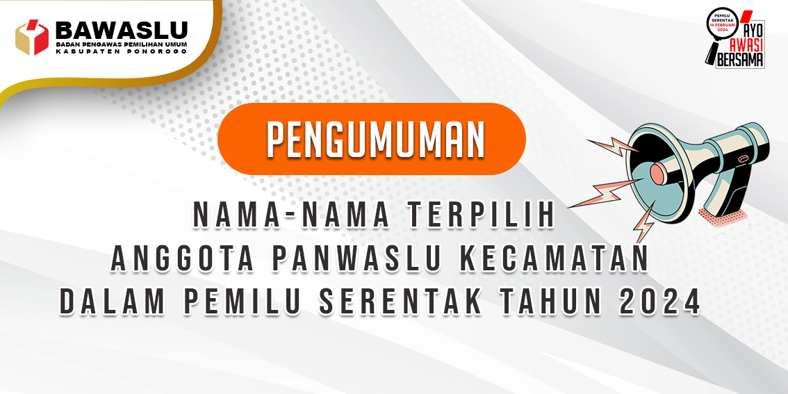 Pengumuman Nama-Nama Terpilih Anggota Panwaslu Kecamatan Dalam Pemilu Serentak Tahun 2024