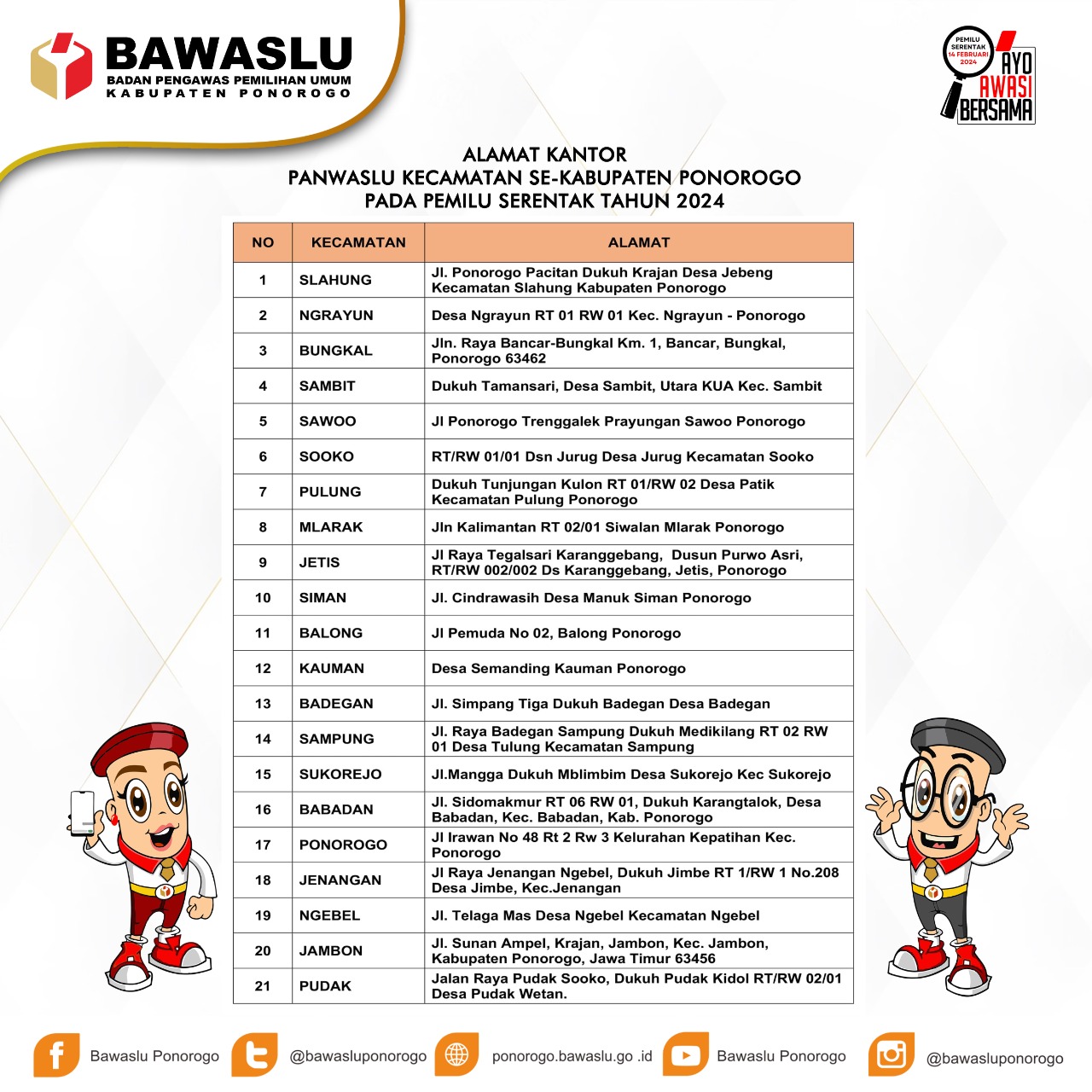Pengumuman juga dapat diakses di Kantor Panwaslu Kecamatan terkait dengan alamat sebagai berikut: