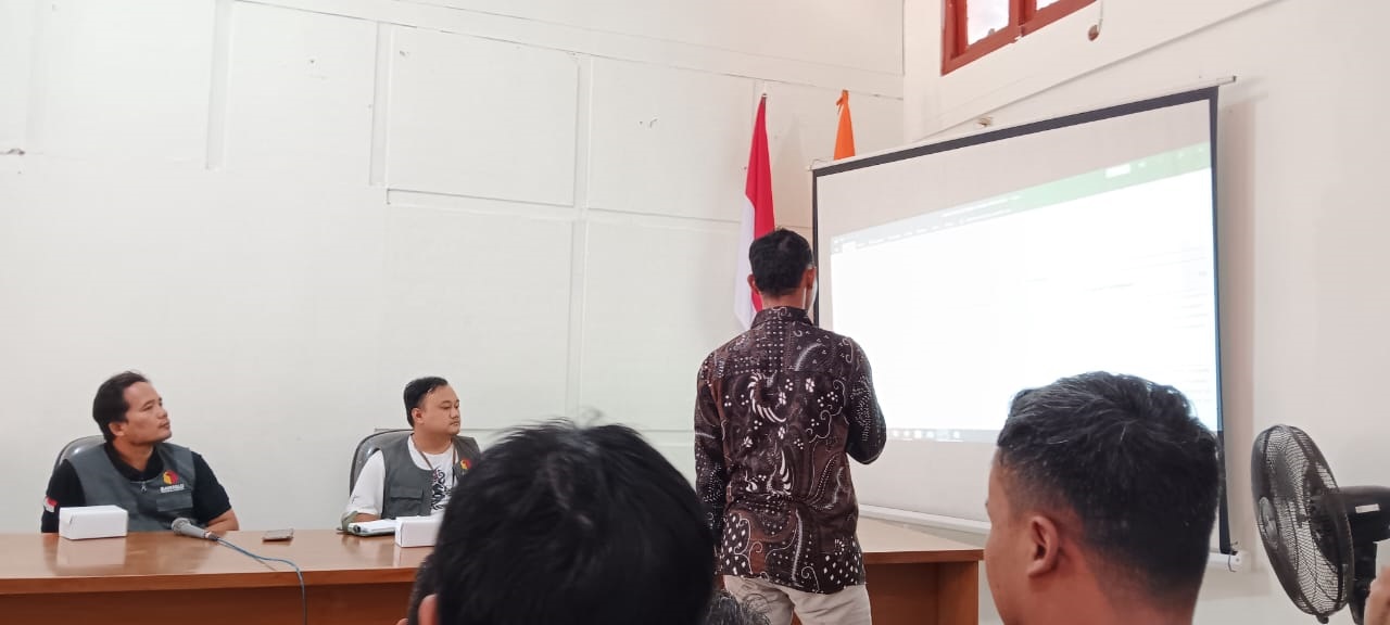 Marji Nurcahyono, Anggota Bawaslu Ponorogo meminta Panwaslu Kecamatan memaparkan laporan kinerja dalam pengawasan tahapan Pemilu, Jumat (3/3/3023).