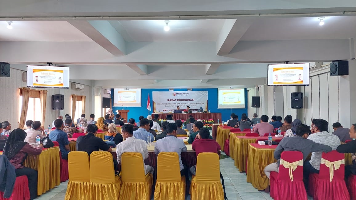 Rapat Koordinasi Fasilitasi Pembinaan dan Penguatan Kelembagaan Pada Pemilu Serentak tahun 2024 yang diikuti oleh seluruh Anggota Panwascam se-Ponorogo, Kamis pagi (9/2/2023).
