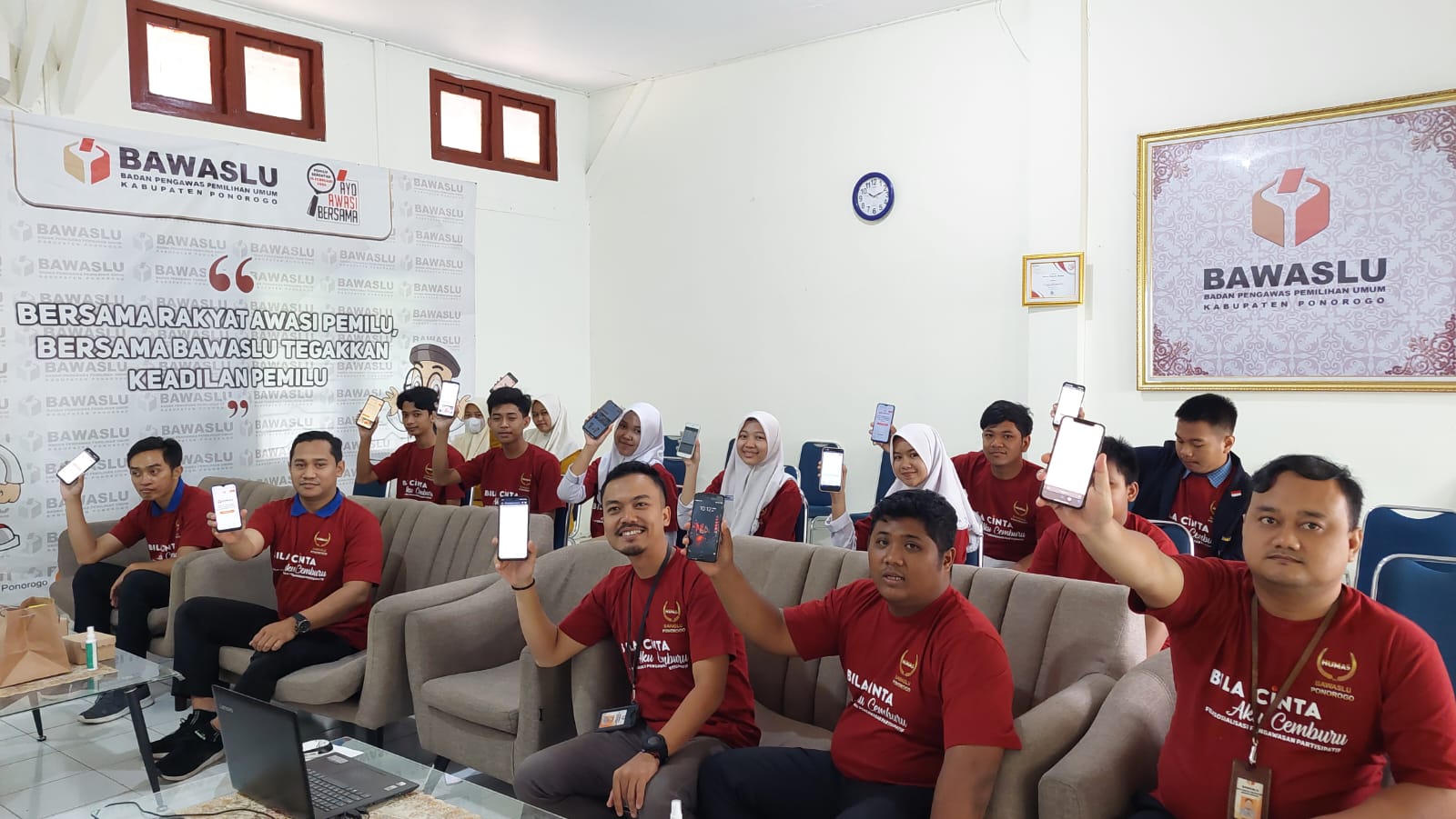Ponorogo (ponorogo.bawaslu.go.id) Memperingati satu tahun menuju penyelenggaraan Pemilihan Umum Serentak tahun 2024, Badan Pengawas Pemilihan Umum Kabupaten Ponorogo mengajak pemilih pemula melek literasi kepemiluan dengan turut bergabung dalam komunitas digital pengawasan partisipatif “Jarimu Awasi Pemilu.”