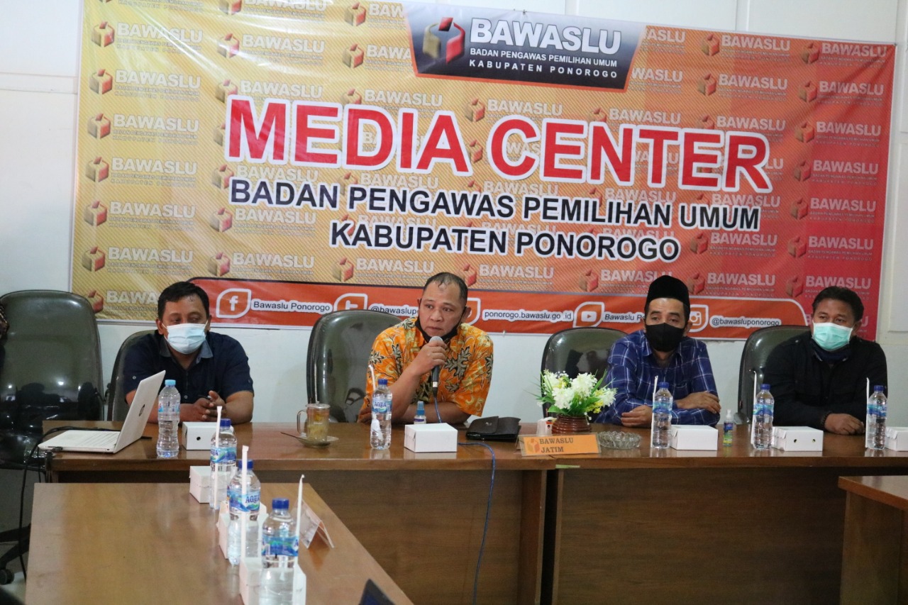 Didampingi Pimpinan Bawaslu Ponorogo, Muh.Syaifulloh dan Widi Cahyono serta Korsek Wakhid Purwanto, pria kelahiran Malang ini juga mengimbau kepada Bawaslu Kabupaten/Kota untuk menjaga integritas penyelenggara serta tidak berpihak ketika menerima sengketa yang diajukan oleh para peserta Pemilihan.
