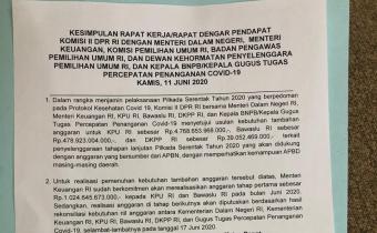 (11/6), membahas tambahan anggaran Pilkada 2020 yang akan digunakan untuk