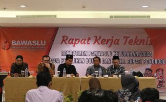 Umum (Panwaslu) Desa/Kelurahan pada Pilkada 2020, Bawaslu Kabupaten Ponorogo menggelar rapat kerja teknis (Rakernis) dalam rangka