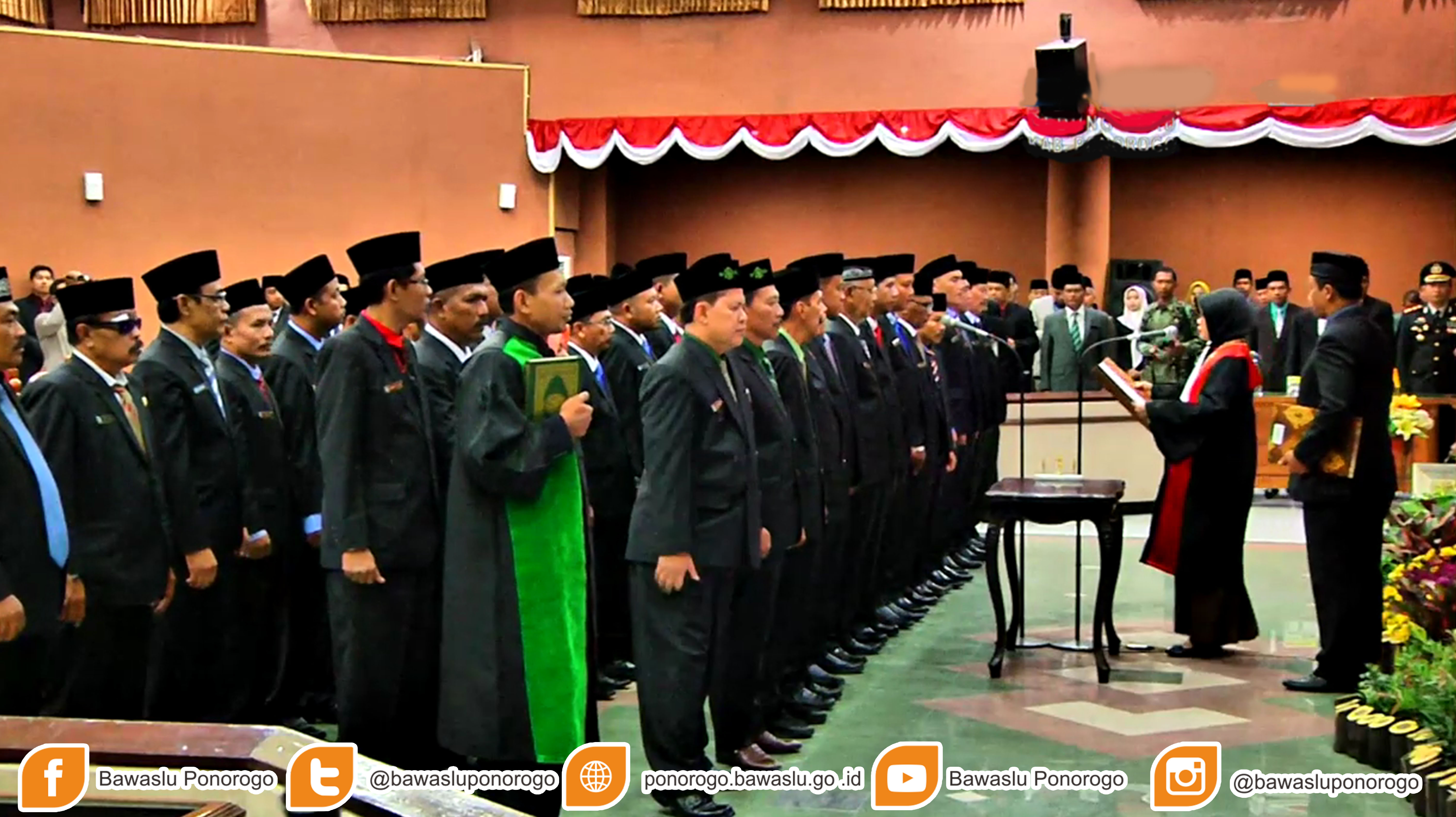 Ketua Bawaslu Kabupaten Ponorogo Muh. Syaifulloh saat dikonfirmasi menyatakan, pelantikan tersebut dihadiri oleh Bupati Ponorogo Drs. H. Ipong Muchlissoni, Wakil Bupati Ponorogo DR. H. Soedjarno, MM, Sekretaris Daerah Ponorogo, FORKOPIMDA, Bawaslu Ponorogo, KPU Ponorogo dan undangan lainnya.