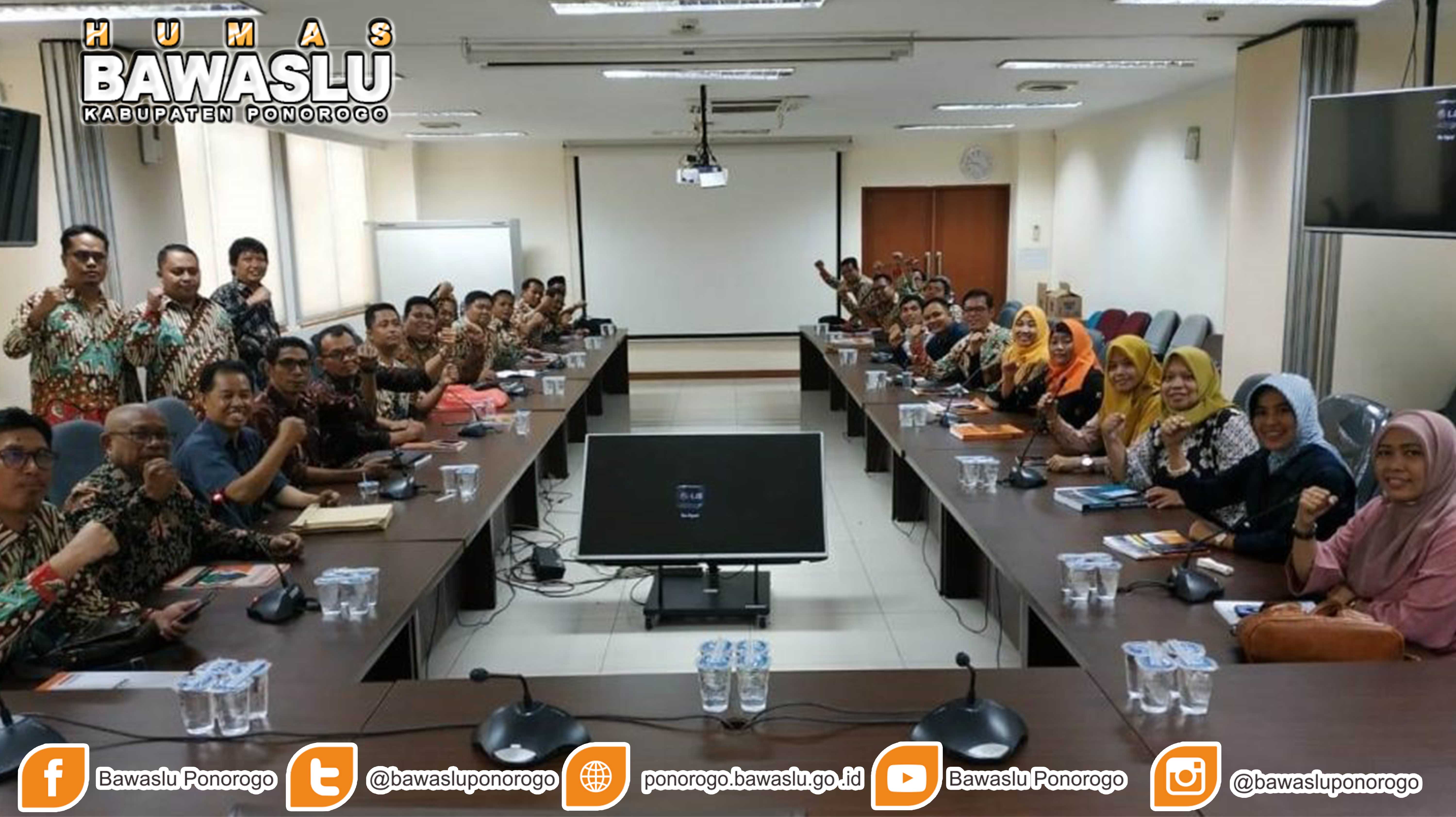 Jakarta (ponorogo.bawaslu.go.id) Anggota Bawaslu RI Moh.Afifudin menerima secara langsung rombongan Kordiv Pengawasan, Hubungan Masyarakat dan Hubungan Antar Lembaga, 38 Bawaslu Kabupaten/Kota se Provinsi Jawa Timur di kantor Bawaslu RI, Kamis (10/10/2019).