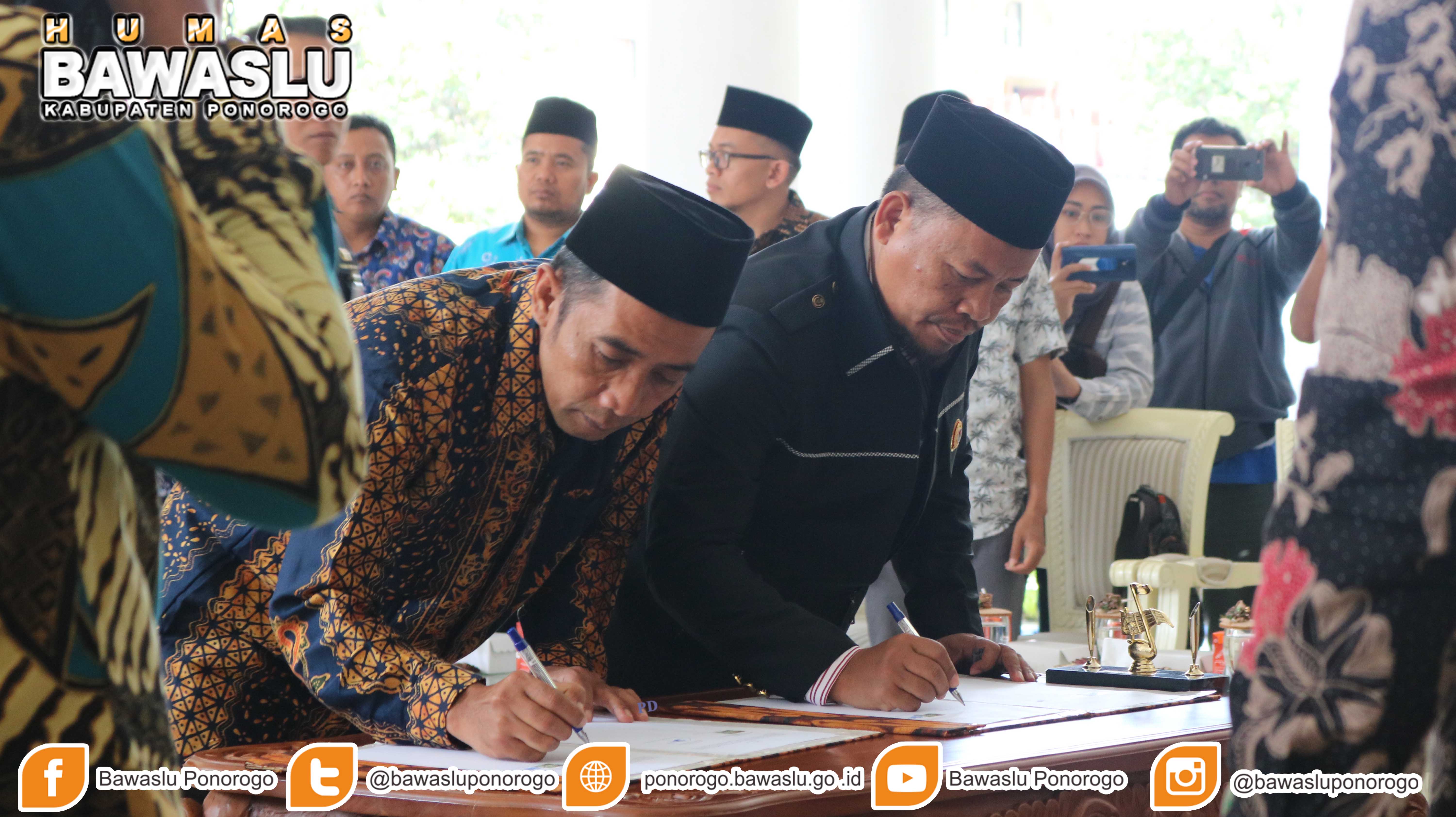 Penandatanganan Naskah Perjanjian Hibah Daerah (NPHD) oleh Bupati Ponorogo Drs.H.Ipong Muchlissoni, Ketua Bawaslu Moh,Syaifulloh,S.Ag. dan Ketua KPU H.Munajat tersebut dilaksanakan di Rumah Dinas Bupati Ponorogo dan dihadiri oleh jajaran Bawaslu, KPU, Wakil Bupati, Pengadilan Negeri, POLRES, KODIM, Ketua DPRD serta Bakesbangpol.