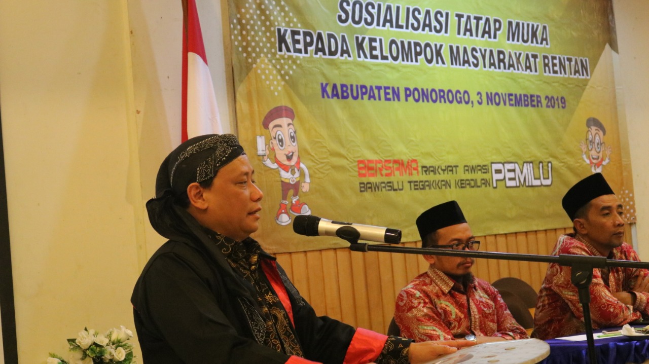 Ponorogo (ponorogo.bawaslu.go.id) Badan Pengawas Pemilihan Umum RI melakukan kunjungan khusus di Kabupaten Ponorogo. Kunjungan tersebut dalam rangka Sosialisasi Tatap Muka kepada Kelompok Masyarakat Rentan di Maesa Hotel Ponorogo, Minggu (3/11).