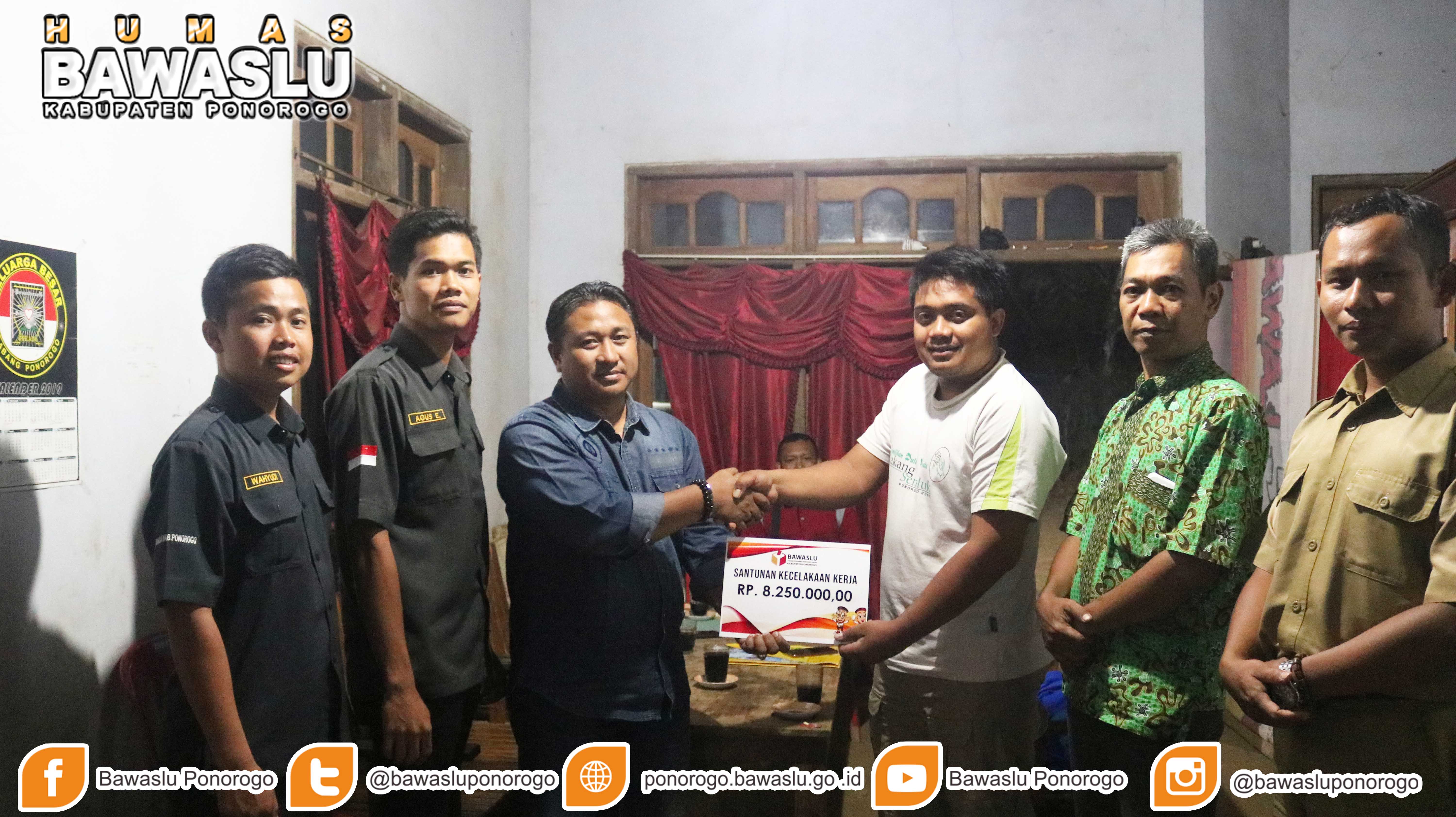 Ponorogo (ponorogo.bawaslu.go.id) Badan Pengawas Pemilihan Umum Kabupaten Ponorogo memberikan santunan kepada pengawas Pemilu ad hoc yang mengalami kecelakaan saat menjalankan tugas dalam perhelatan Pemilu 2019.