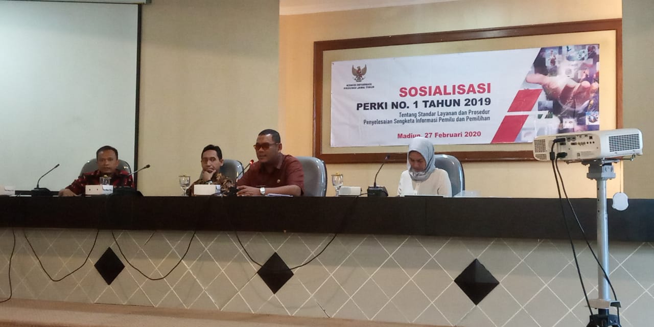 Untuk itu Komisi Informasi Provinsi (KIP) Jawa Timur menggelar Sosialisasi PERKI Nomor 1 Tahun 2019 tentang Standard layanan dan Prosedur Penyelesaian Sengketa Informasi Pemilu dan Pemilihan, di Madiun 27/2/2020.