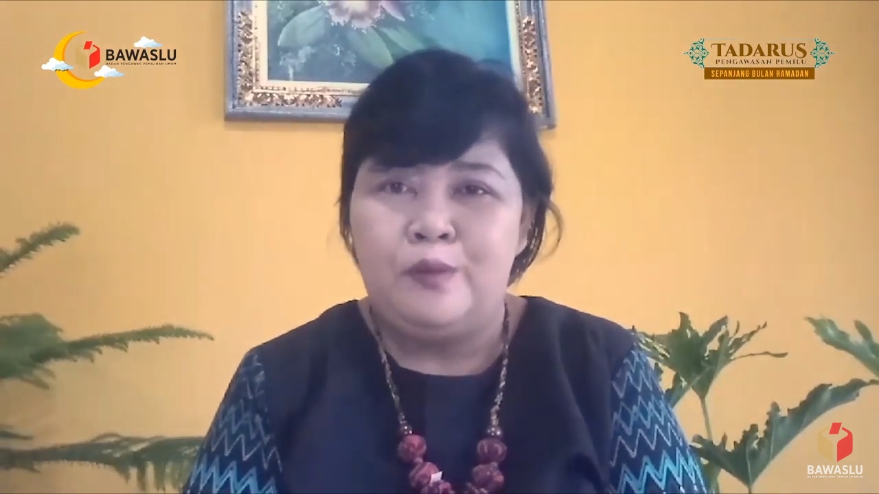 Sri Nuryanti dari Lembaga Ilmu Pengetahuan Indonesia (LIPI) saat menjadi narasumber Tadarus Pengawasan Bawaslu RI (8/5).