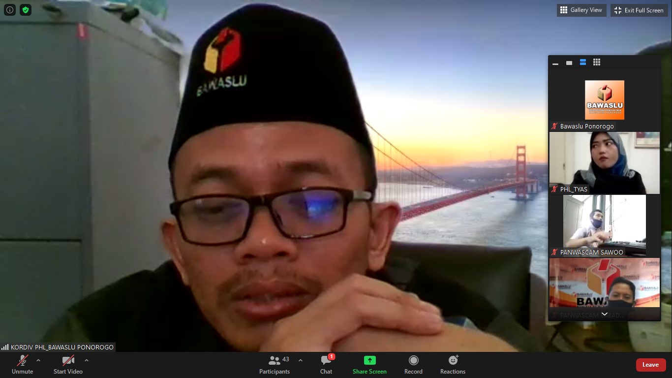 “Untuk itu kita (Bawaslu) harus pastikan dari akarnya dan harus benar-benar extra cermat dalam mengawasi pencocokan dan penelitian data pemilih oleh PPDP.” Ungkapnya saat memimpin rapat koordinasi daring persiapan pengawasan Coklit dengan Panwascam Se-Ponorogo, Senin (13/7).