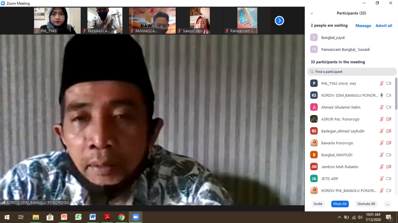 Ketua Bawaslu Ponorogo, Muh.Syaifulloh saat rakor daring bersama Panwascam, Senin (13/7).