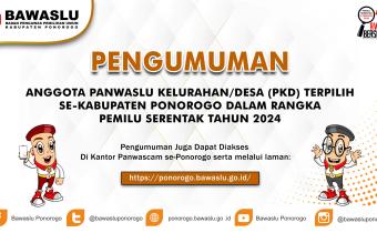 Ponorogo (ponorogo.bawaslu.go.id) Dalam rangka melaksanakan amanat Peraturan Badan Pengawas Pemilihan Umum Republik Indonesia Nomor 19 Tahun 2017 sebagaimana diubah terakhir dengan Peraturan Badan Pengawas Pemilihan Umum Republik Indonesia Nomor 4 Tahun 2022, setelah melakukan pe